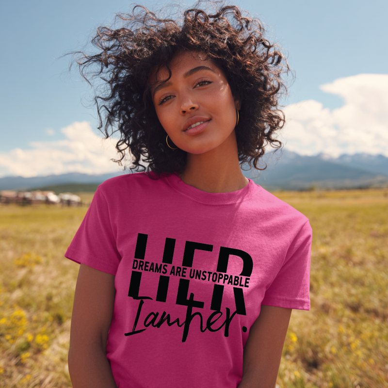 Proudly displaying the phrase 'I AM HER', this piece encourages you to be unapologetically you, a brave and fearless being ready to conquer whatever comes her way. Its aesthetically pleasing design, in sync with the empowered woman theme, speaks volumes about the girl power that inspired it.